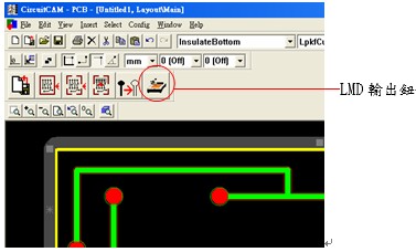 畫(huà)面上,在各層面(如零件面、焊錫面)中會(huì)有一條不同顏色之隔離線(xiàn)細(xì)線(xiàn),如圖30。然后可以做存檔的動(dòng)作,CAM檔案所存在位置,LMD檔就會(huì)輸出至同一位置。