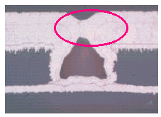 埋孔不能有可見空洞,凸、凹現(xiàn)象不能影響介質(zhì)厚度的要求。